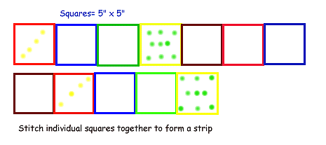 3) Machine-stitch these together to form rows. Use a 5/8" seam allowance. See diagram below: